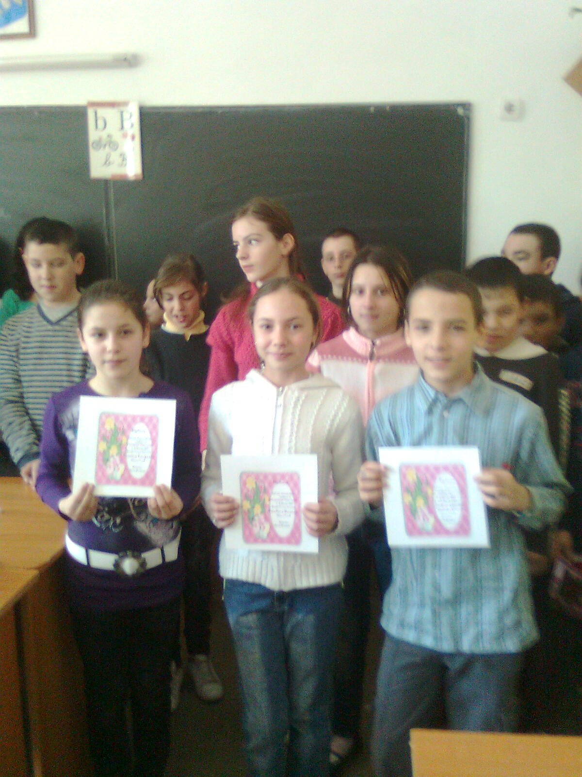 Mergeam la şcoală grăbită să nu întârzii. Am văzut o pisică la geam, pufoasă, frumoasă, cenuşie, cu ochi albaştri. După ore m-am jucat cu fetele în drum şi a apărut o vrăbiuţă cu un picior rupt, pe care l-am legat cu o batistă. Am luat pasărea acasă, am ţinut-o într-o cuşcă de păsări şapte zile până s-a îndreptat şi a plecat cine ştie unde. Avea ochişori verzi şi era un pic roşie la gât. Ne-am bucurat văzând cum zboară în libertate şi ne-am înveselit când am văzut în tufe pisica pufoasă, pe care am admirat-o lângă geamul şcolii.