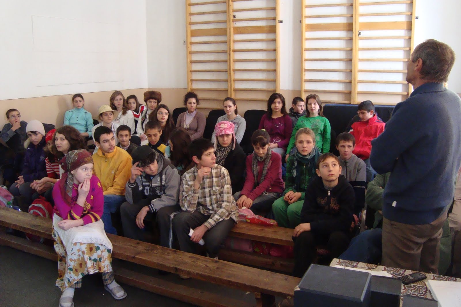 Elevii ascultă cu interes vorbele domnului profesor